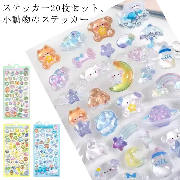 ご褒美シール ごほうびシール 可愛い 立体 20枚セット DIY用 ステッカー シール ぷっくり 装飾用 ボンドロップ アルバム 手帳 スマホケース飾り キラキラ 子供 かわいいシール