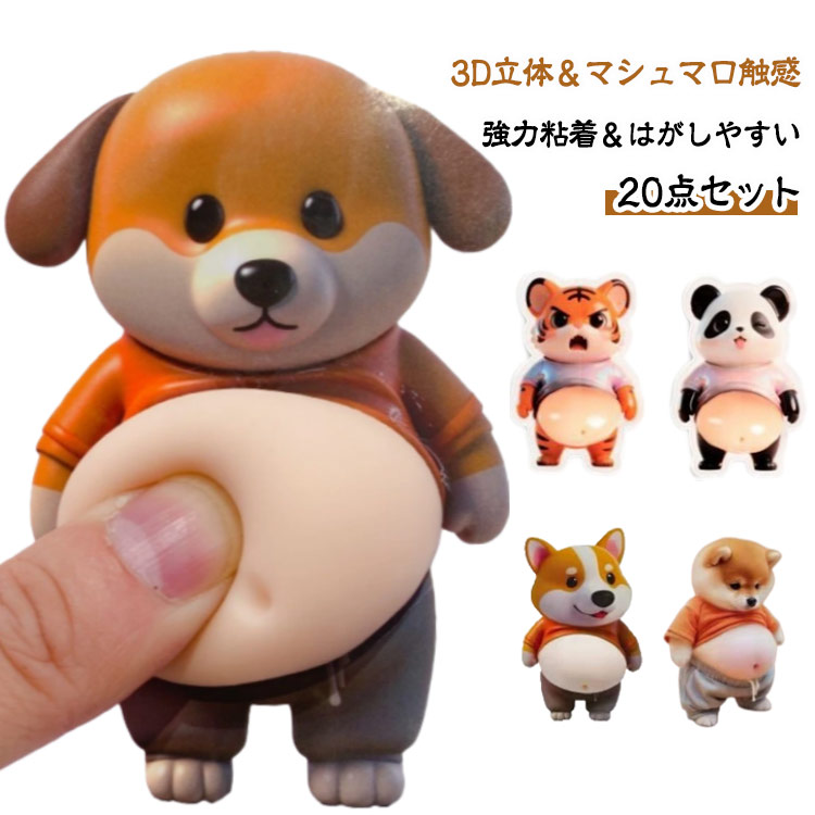 3D ぷにぷにシール もっちりスクイーズ ステッカー 柔らかいお腹 癒し ストレス解消 もちもち ふわふわ マシュマロ触感 20点セット スクイーズ ル帳 かわいい デコレーション 携帯電 シー