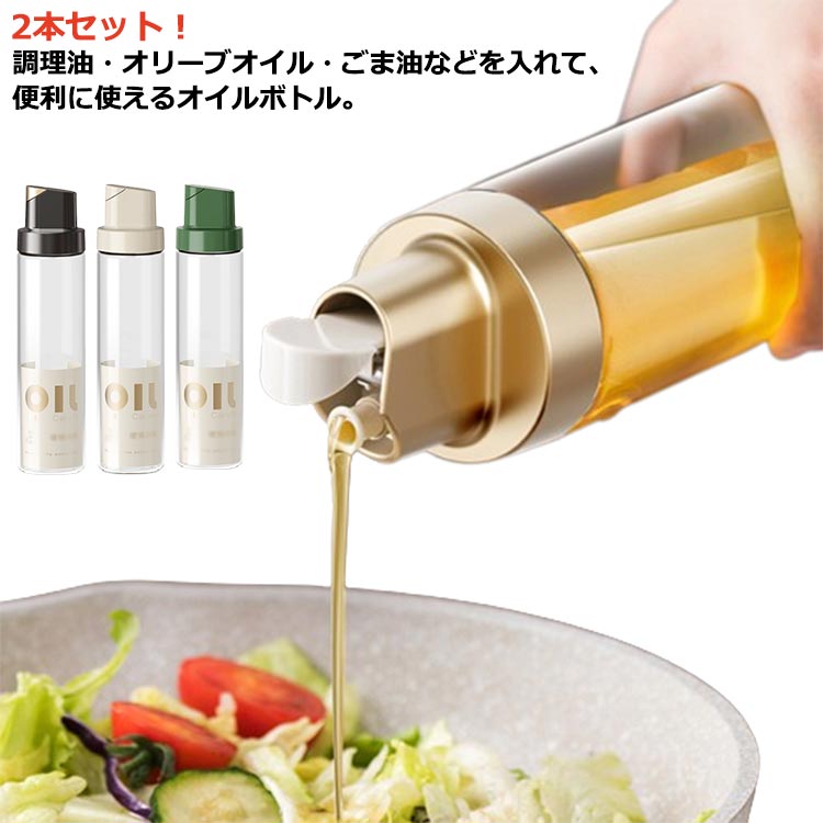 2本セット オイルボトル 液だれしない 500ml オイルポット 油ポット 自動開閉 透明 ガラス 調味料入れ オイル差し 醤油さし 醤油ボトル ビネガーボトル サラダ油 出汁 お酢 オリーブオイル