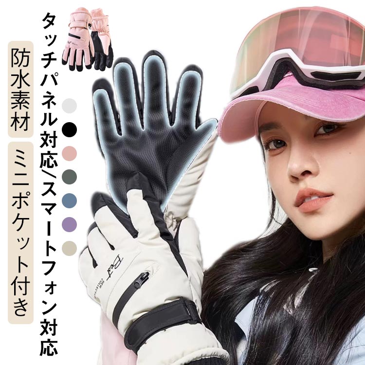 送料無料 スキー グローブ レディース 防水 全掌タッチ対応 スマホ 手袋 スポーツ スノー手袋 手袋 スキー手袋 裏起毛 防寒 雪遊び 滑り止め ミニポケット付き 自転車