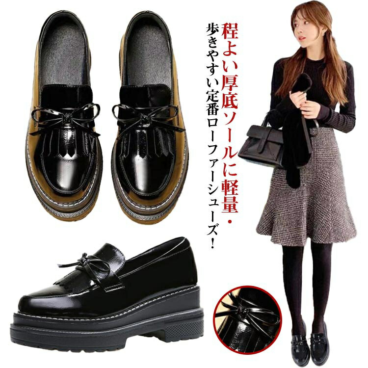 厚底ローファー レディース パンプス ローファー 厚底 タッセル フォーマル靴 フォーマルシューズ スクールローファー 安定感 履きやすい クッション 薄手 裏起毛 通勤 ビジネス 厚底靴 シンプル