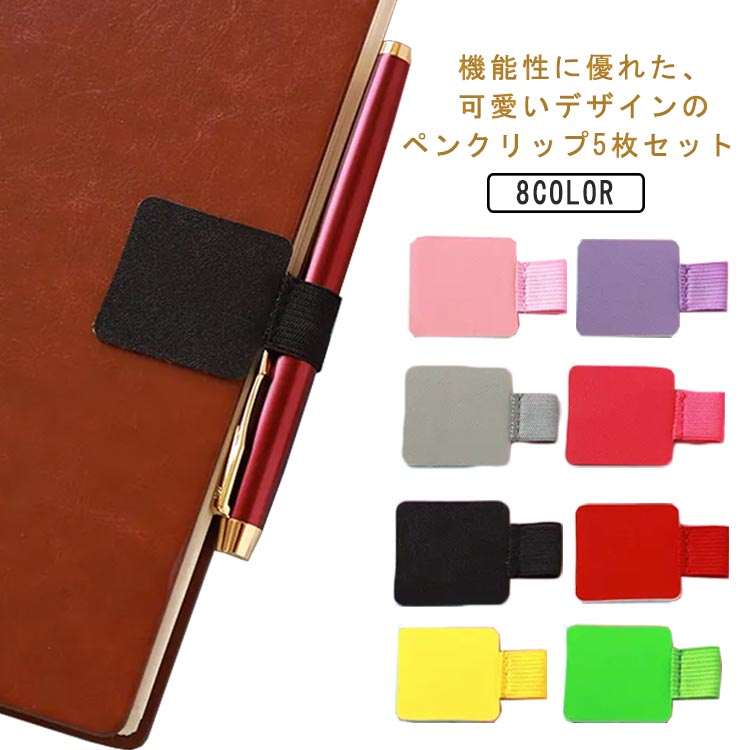 ペンクリップ 5枚セット ペンループ 手帳小物 ペンホルダー 手帳 ノート レザークリップ 自己粘着 アクセサリー 貼付け タイプ ペンケース ペン差し シス ペンホルダー付ポケットシール