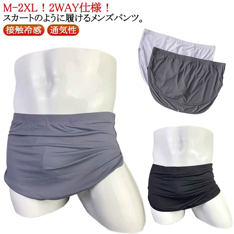下着 メンズ スカート ボクサーパンツ 2wayで履ける 吸汗速乾 涼しい トランクス 通気性 接触冷感 夏用 巻きスカート 蒸れない インナー ストレッチ 男性用 肌着
