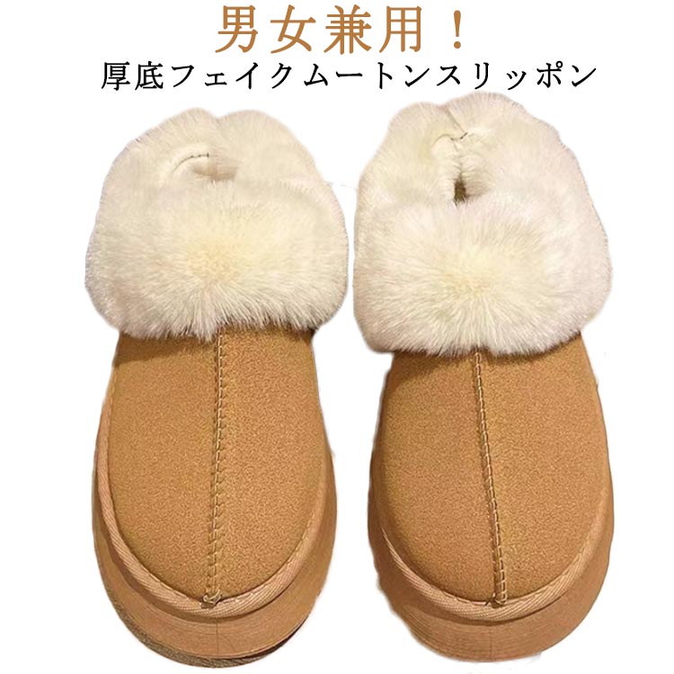 ムートン スリッポン レディース メンズ 厚底 暖かい 防寒 エコファー ムートンブーツ ショートブーツ 送料無料