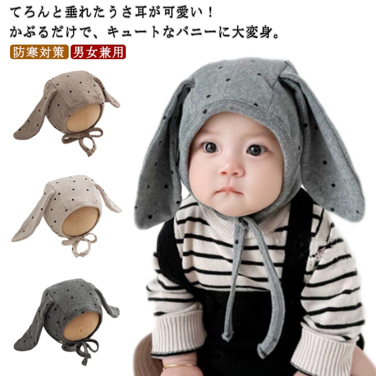 うさぎ 耳付き 垂れ耳 ベビー帽子 新生児 帽子 ハット キャップ 柔らか ベビー服 ウサ耳 バニー 子供服 男の子 女の子 可愛い 月齢フォト 男女兼用 幼児 防寒対策 韓国服 出産祝い お出かけ