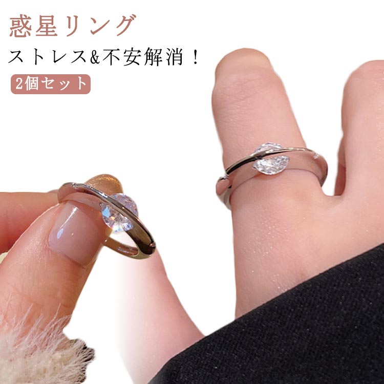 2個セット プラネットスピニングリング フィジェットリング 惑星リング リング 金属アレルギー対応 キュービックジルコニア メンズ 不安解消ジュエリー 指輪 サイズ調整 レディース