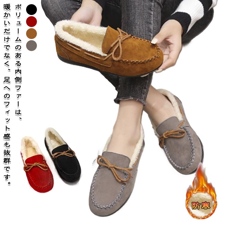 カジュアルシューズ リボン 快適 モカシンシューズ フラット 防寒 痛くない 歩きやすい あったか やわらかい