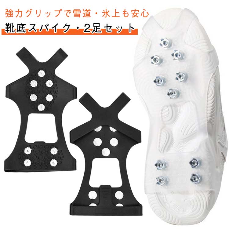 【2足セット】 送料無料 靴底に装着するだけでどんな靴も雪道に対応可能 アイススパイク スノースパイク 靴 靴底 雪 氷 滑らない すべり止め