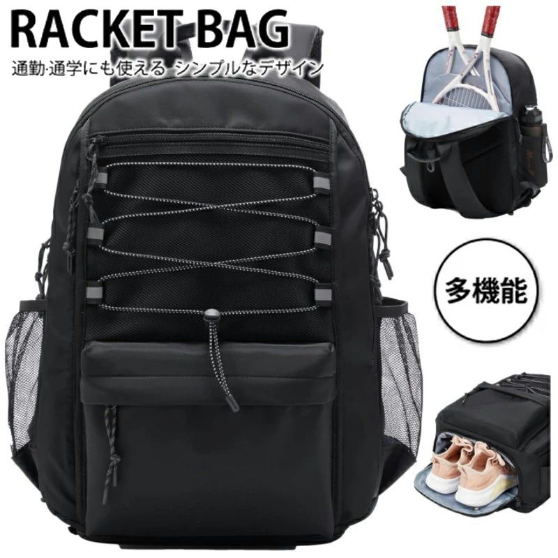 テニスバッグ 2本用 テニスラケットバッグ テニスラケットリュック バドミントンラケットバッグ 靴収納付き ジムリュック バドミントンバッグ リュック テニスバックパック 撥水加工 学生用 大 大容量