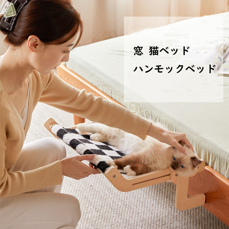 窓引っ掛け 猫ハンモック 木製 省スペース 組立簡単 幅16cm対応 ペットベッド 耐荷重15kg