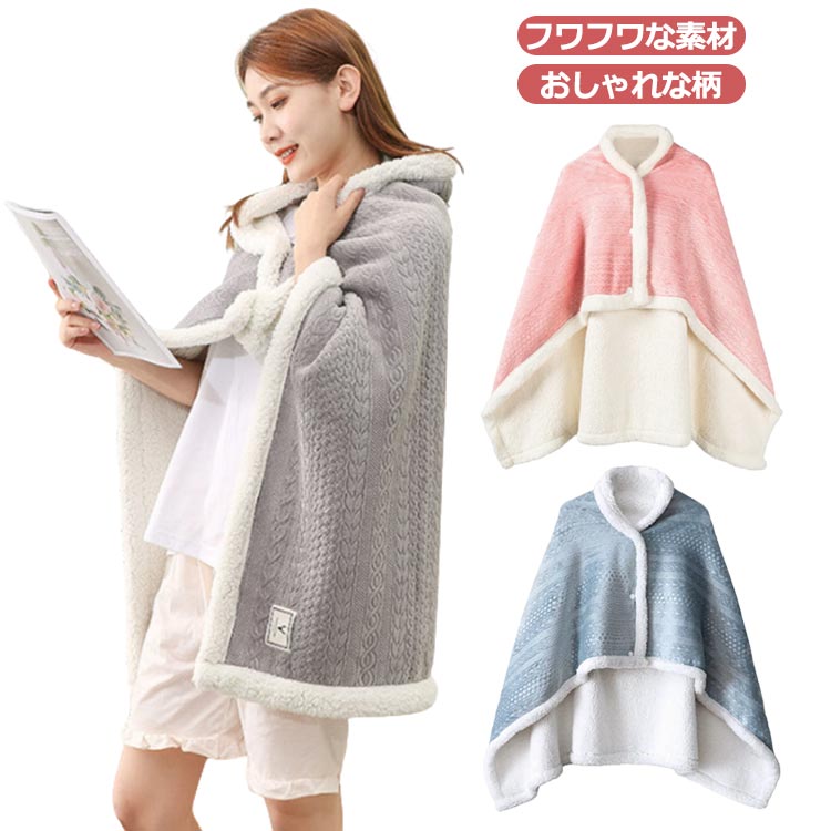 ボタン付き レディース ポンチョ ブランケット 着る毛布 北欧 ふんわり ふわふわ ショート 肩掛け あったか 羽織る 膝かけ ひざ掛け 毛布 オシャレ 冬 ボタン 会社 車泊 防寒対策 在宅 裏起毛
