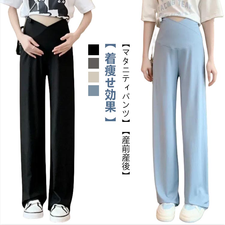 マタニティパンツ ワイドパンツ 大きいサイズ リブパンツ ストレッチ性 アジャスター お洒落 無地 ロングパンツ ズボン 妊婦服 初期 中期 産前産後 春夏 着痩せ 通気性 美脚
