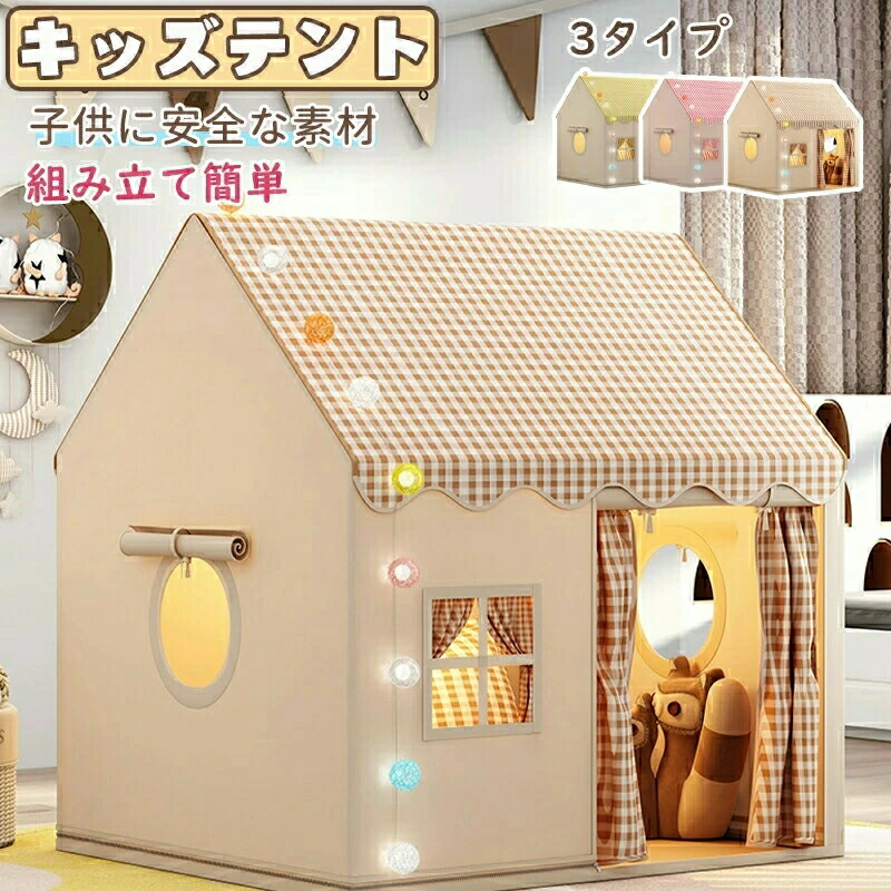 キッズテント 子供テント 室内遊具 屋根付き 室内ハウス お庭で遊園地気分 ベージュ イエロー ピンク
