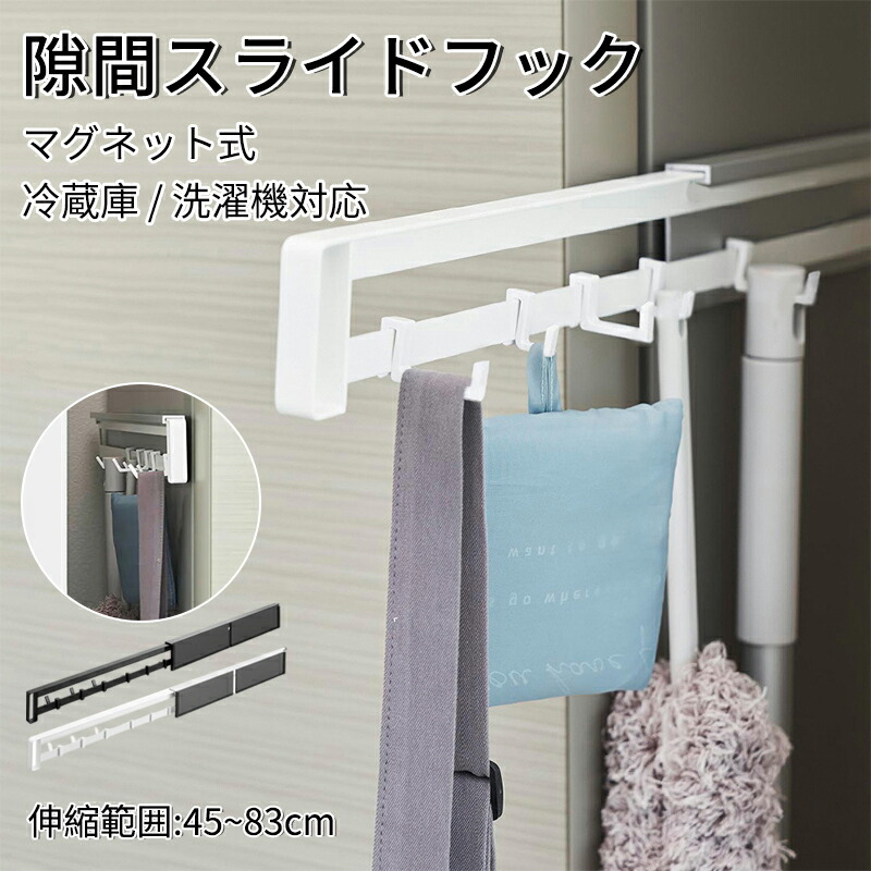 壁掛け伸縮すきまフック 壁掛け マグネット式 磁着 伸縮 スライド式 スライド フック キッチン 台所 お風呂 バスルーム 浴室 収納 便利 整理 整頓 隙間 耐久性 コンパクト ポリスチレン 調整