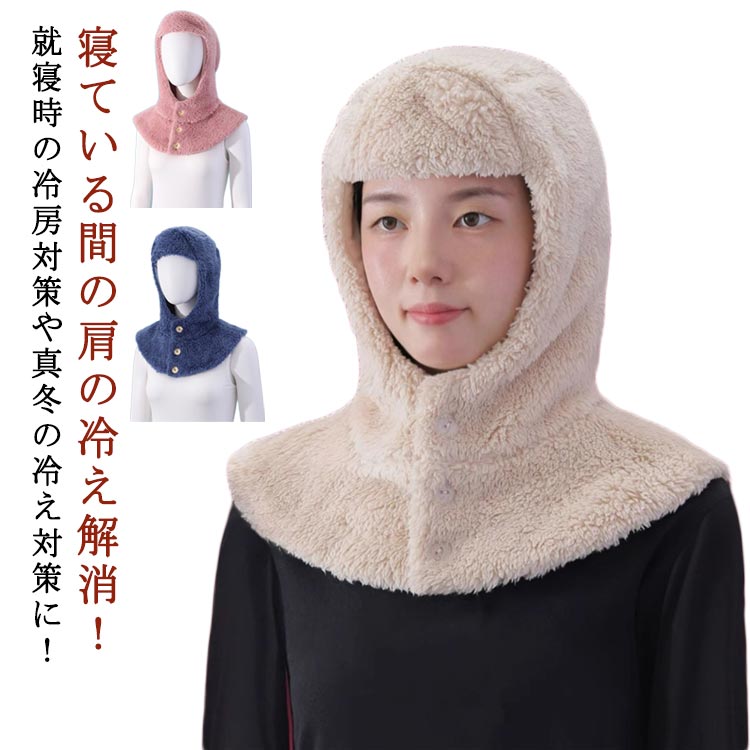防寒グッズ フード 冬 マフラー 寝具 就寝用 ネックウォーマー 冷え対策 裏起毛 肩当て あったか 防寒 部屋着 おやすみ帽子 肩 帽子 上着 冷え対策 防寒