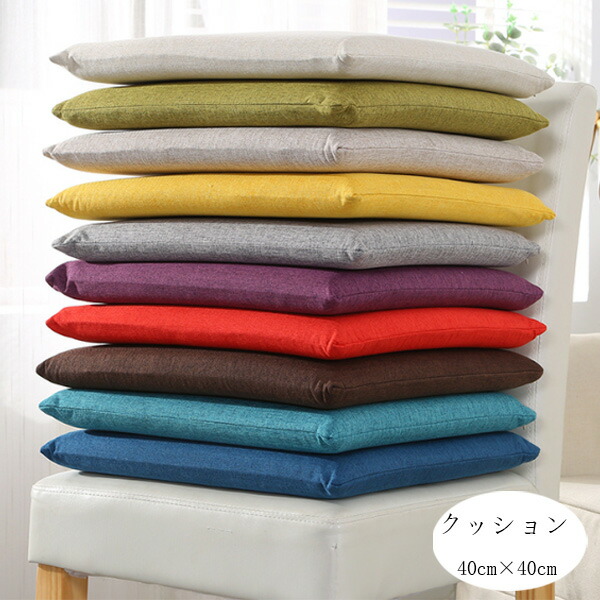 亜麻素材の角型クッション。40×40の正方形で、北欧風のデザイン。高反発で椅子用や和室にも最適。
