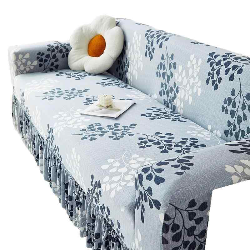 ソファカバー 春夏用 接触冷感 伸縮 ストレッチ フリル 滑り止め 肘掛け 背もたれ一体型 マルチ対応 北欧風 植物柄 多展開 再生繊維