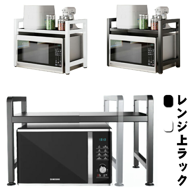レンジ上ラック 伸縮式 2段式 電子レンジラック 高さ調整可能 オーブンレンジラック レンジラック レンジ上 ラック キッチン収納ラック フック付き 省スペース 耐熱 組み立て簡単 おしゃれ 白 防錆