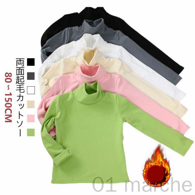 可愛い 起毛トップス 子ども服 子供服 ロンT あったか 女の子 タートルネック ハイネック 男の子 カットソー 裏起毛 キッズ 秋 冬 インナー tシャツ フリース かわいい こど キッズ服