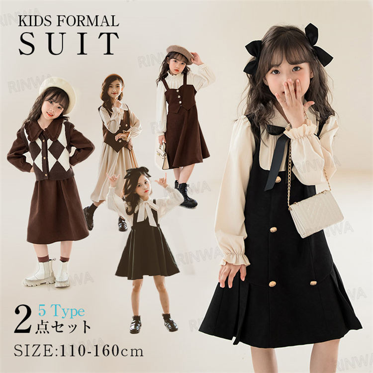 子供 ドレス ワンピース 入学式 スーツ 女の子 サスペンダースカート ブラウス 2点セット 入学スーツ スカートセット セットアッ セレモニードレス 発表会 子どもドレス チュール 子供服