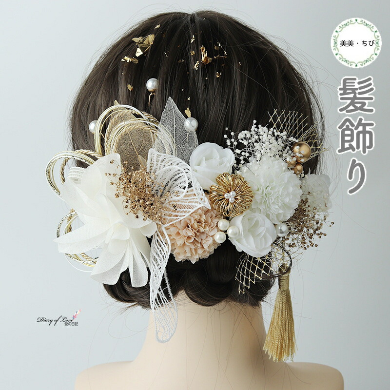 成人式や卒業式、結婚式におススメの髪飾りセットです!水引、紐、金箔シート、バラ、マム、カスミ草が入っています!