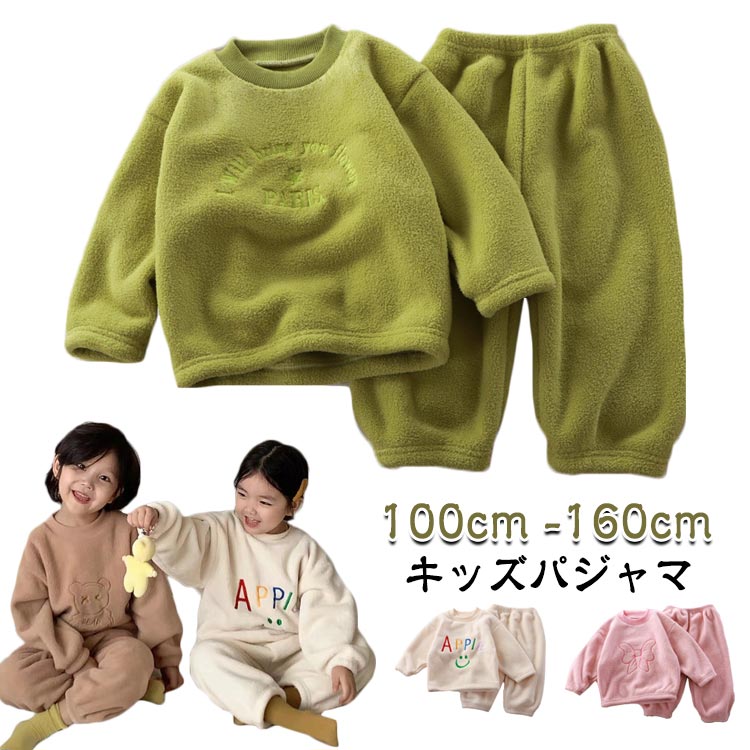 キッズパジャマ 男の子 女の子 長袖 もこもこフリース パジャマ ルームウェア 寝間着 シンプル ふんわり あったか 防寒 保温 子供服 秋物 冬物