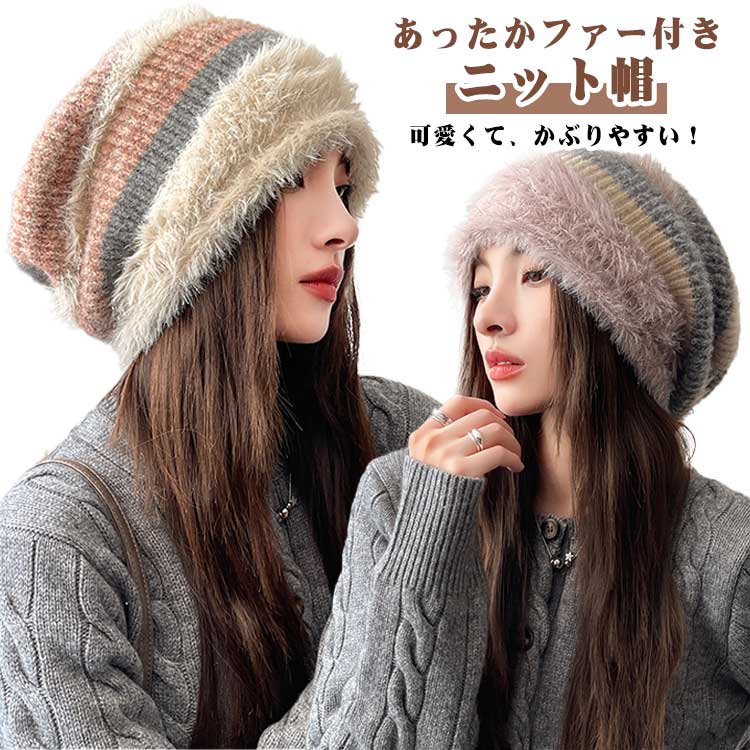 ニットハット フェイクファー ボリューム感 可愛い 小顔効果 お