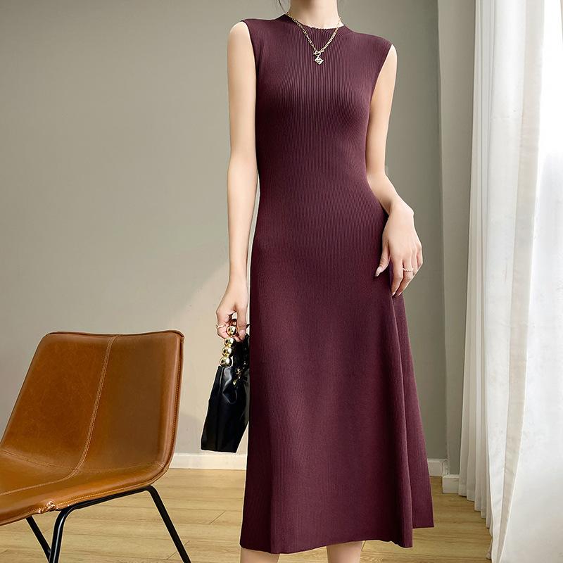 ワンピース レディース ノースリーブ ベスト ニット ドレス ロング丈 無地 ハイネック ゆったり きれいめ エレガント ポリエステル 春夏 通勤 オフィス 着回し