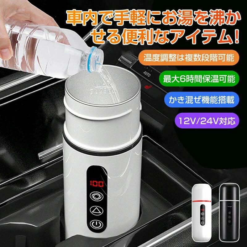 車載電熱ポット 車用 電気ケトル DC12V 24V オートストップ機能 温度3段階調整可能 最大6時間保温可能 かき混ぜ機能搭 空焚き防止機能付