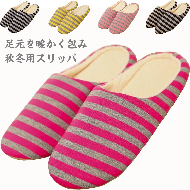 ルームシューズ 静音 22-26.5cm スリッパ メンズ レディース 室内履き ボーダー柄 秋冬 軽量 洗える 男女兼用 滑り止め 北欧 来客用