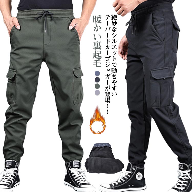 秋 冬 カーゴパンツ ジョガー イージーパンツ ミリタリーパンツ 多いポケット 裏起毛 厚手 あたたかい テーパードパンツ