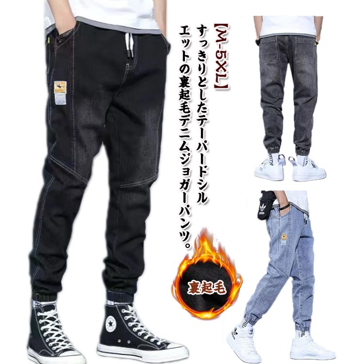 裏起毛 デニムパンツ ジョガーパンツ イージー ゴムウエスト スリムパンツ 厚手 あたたかい 防寒 ジーンズ ジーパン 暖パン