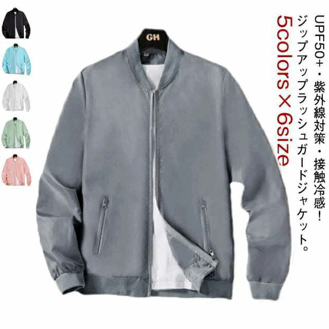 薄手 ジャケット 接触冷感 涼しい ラッシュガード フードなし スタンドカラー 長袖 カット 紫外線対策 日よけ 日焼け対策 スタジャン カジュアル アウトドア スポーツ 送料無料