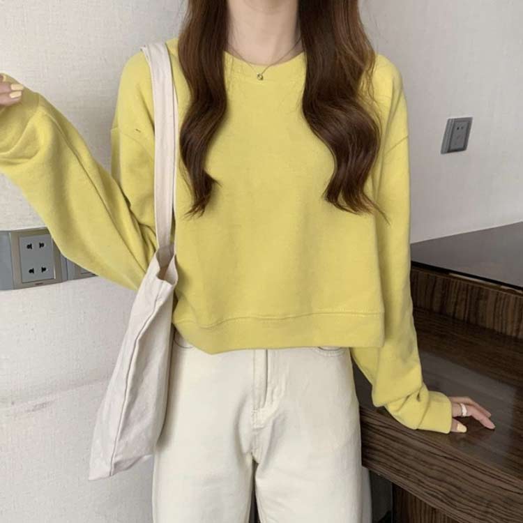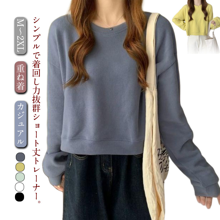 秋 ショート丈トレーナー 春 スウェッ レディースファッション 特集 ブルー グリーン イエロー ホワイト ブラック M L XL 2XL