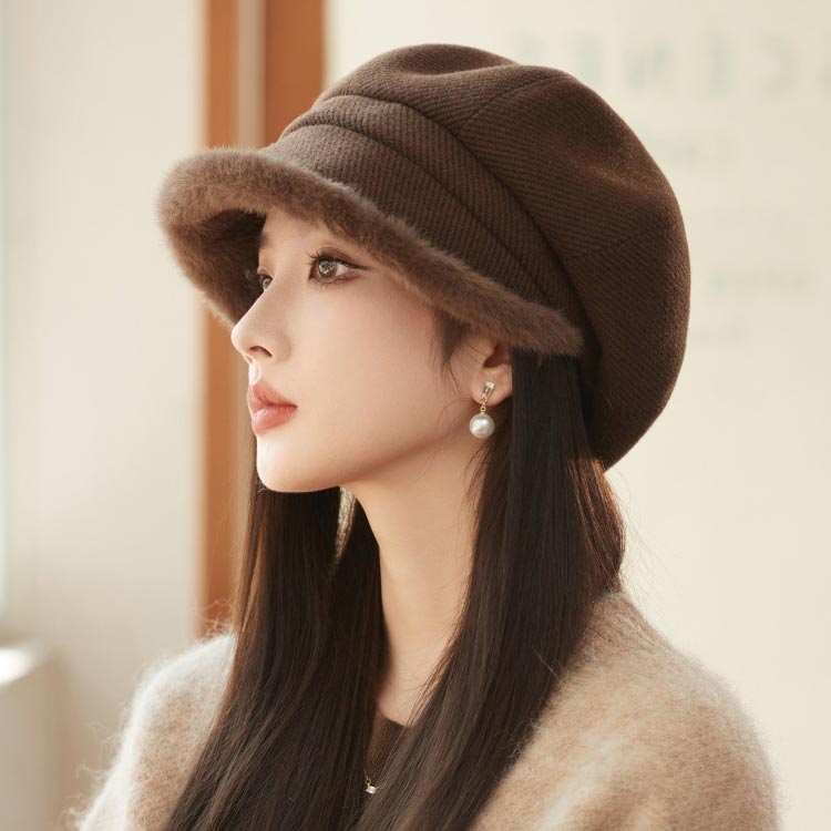 つば裏フェイクファー つば広 秋冬 3 バッグ 小物 ブランド雑貨 豊富 ベージュ ブラウン ダークグレー ブラック キャメル