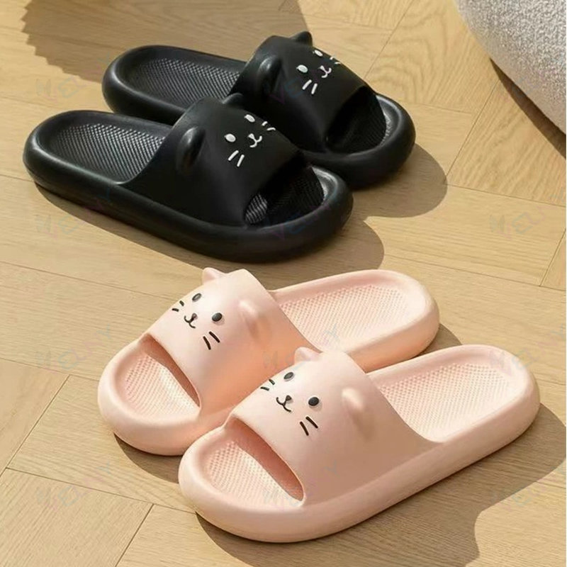 レディース ネコ 顔 サンダル 猫 ス 靴 豊富 ピンク ブラック イエロー 36-37(内寸23cm) 38-39(内寸24cm) 40-41(内寸25cm)