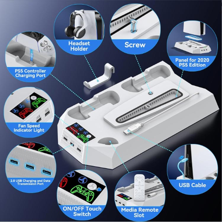 PS5 冷却ファン PS5用 Slim ホワイト ブラック