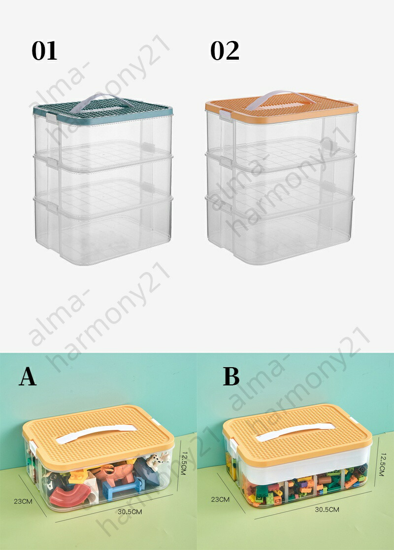 レゴブロック収納ボックス 大容量 おも 1段 2段 3段 ブルー イエロー