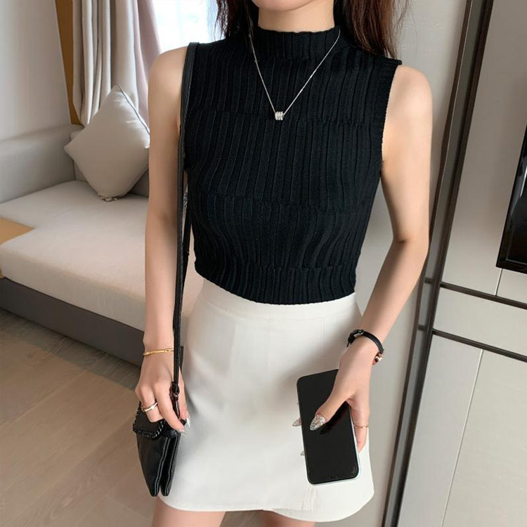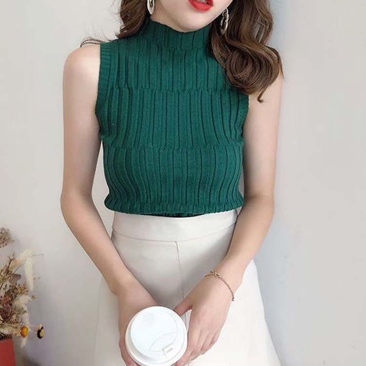 サマーニット ハイネック ノースリーブ トップス タンクトップ 早い者勝ち ブラック ホワイト 赤 イエロー ブリックレッド アプリコット ダークグリーン フルーツグリーン S M L XL