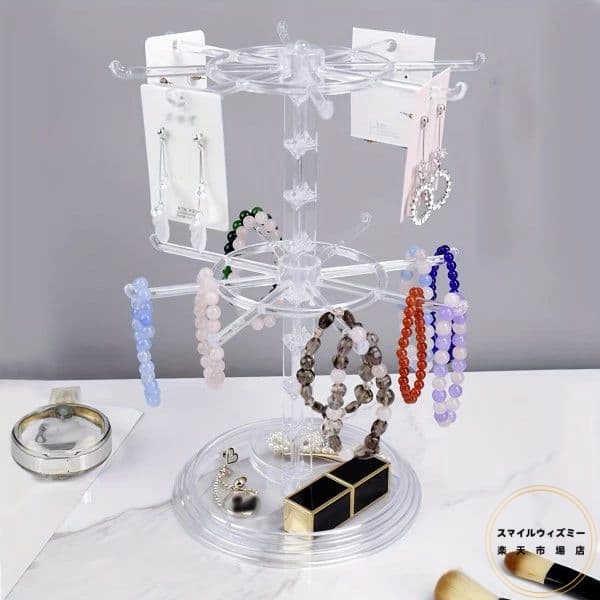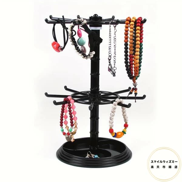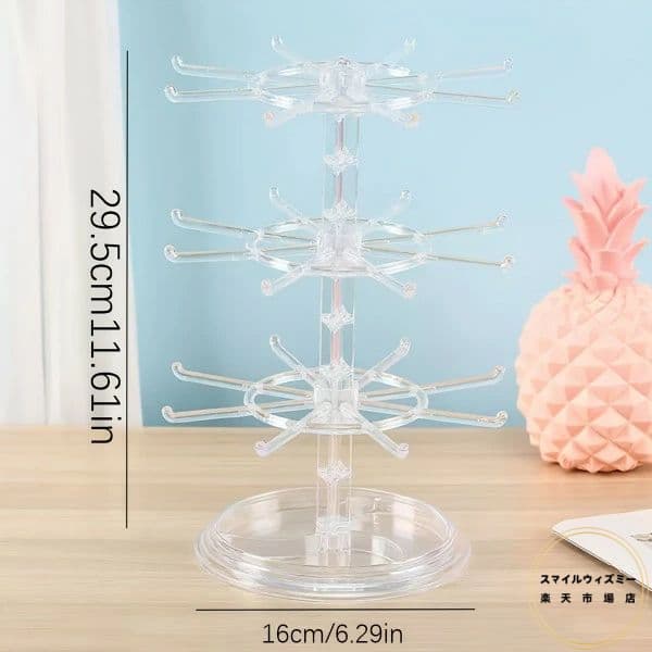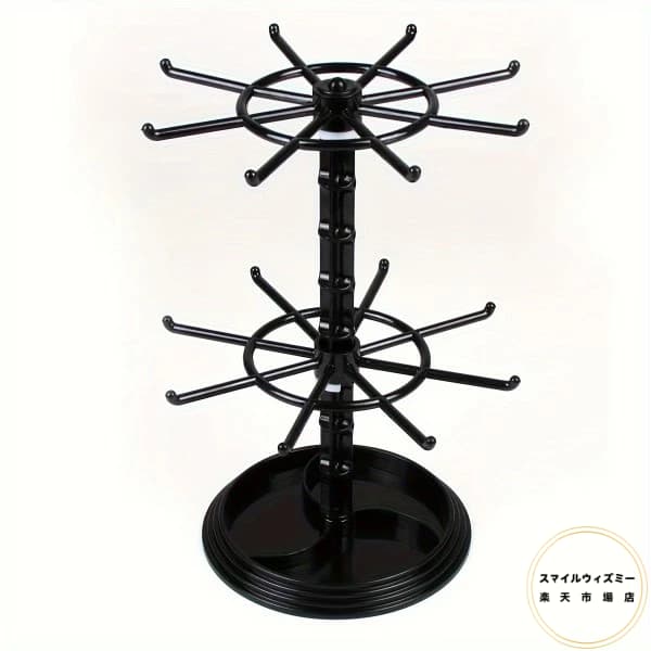 1pc 2層3層回転式16フック収納ラ ブラック 透明 2層回転可能 3層回転可能