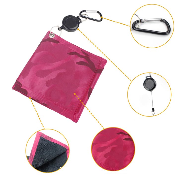 クリーニン マイクロファイバー クリー ゴルフ ラウンド用品 小物 フック付タオル 豊富 ブルー レッド ブラック