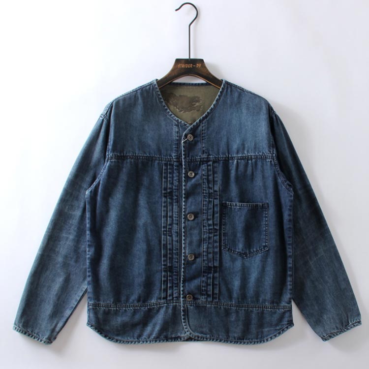 ルーズ ストリート 羽織り アメカジ カジュアル ゆったり ジャケット デニム Gジャン 薄手 ノーカラー 前開き
