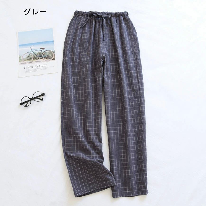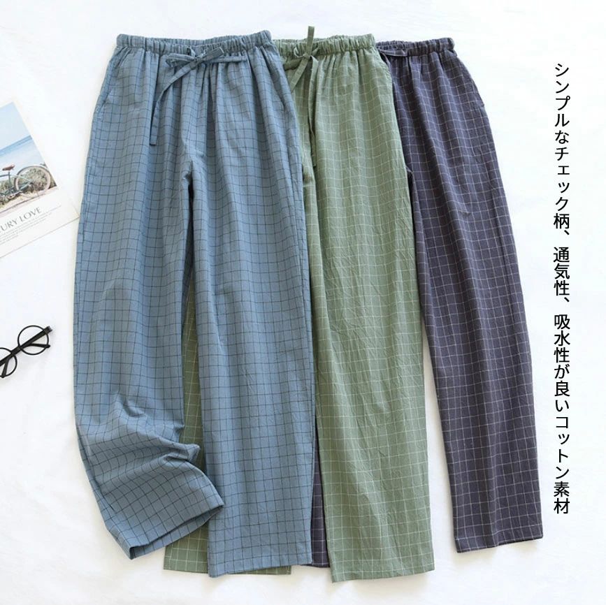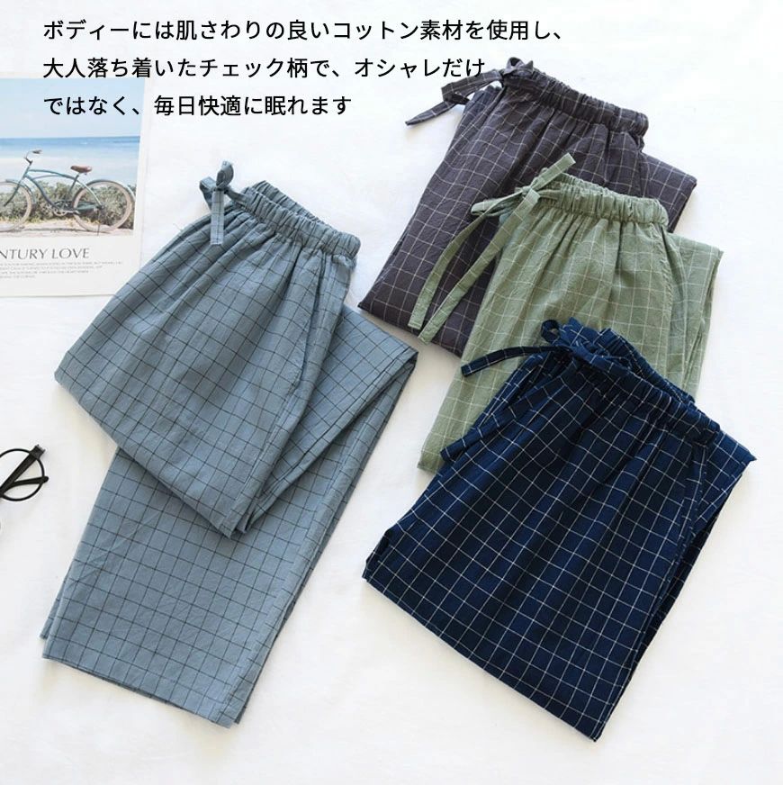 ゆ ボトムス 綿100% ズボン 夏 メンズ ナイトウェア ルームウェア ルームウェア ボトムス 続々入荷中 ネイビー グレー グリーン ブルー グレー(ギンガムチェック) ブルー(ギンガムチェック) S M L XL 2XL