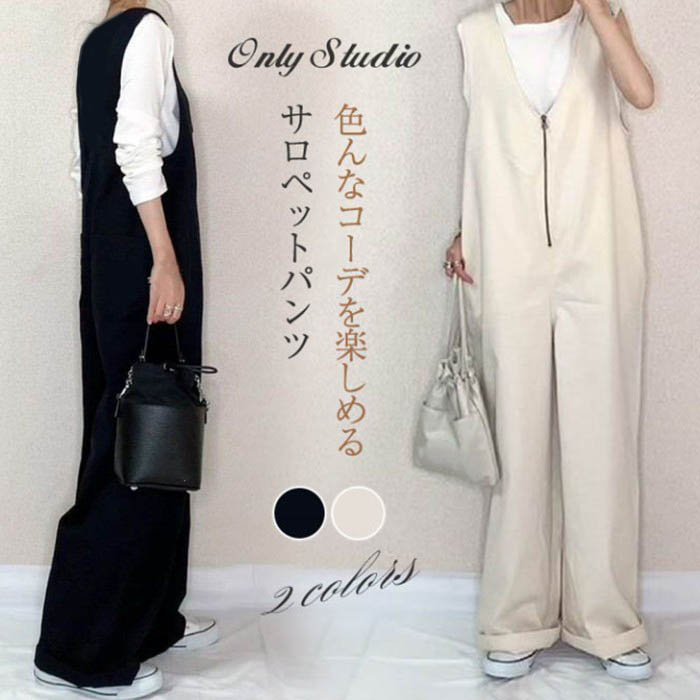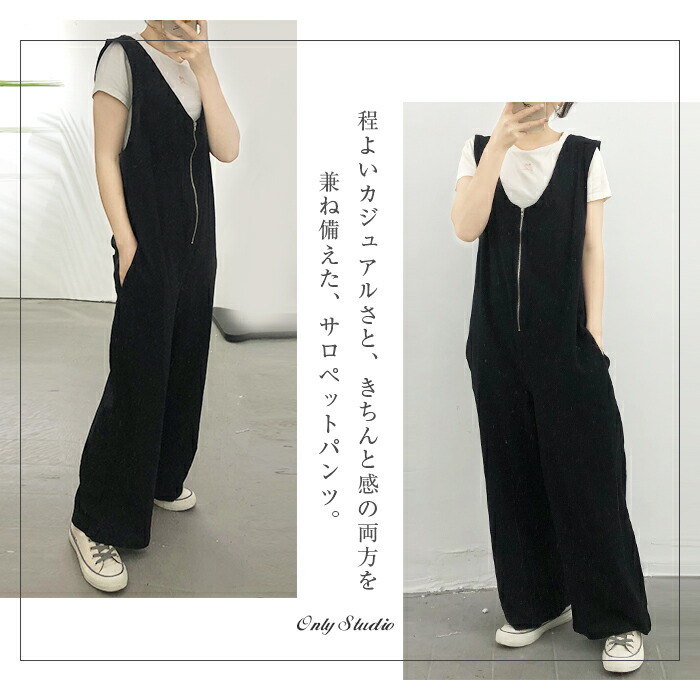 重 ロングパンツ ワイドパンツ オーバ オールインワン サロペット 新作 ブラック ベージュ M L LL 3L
