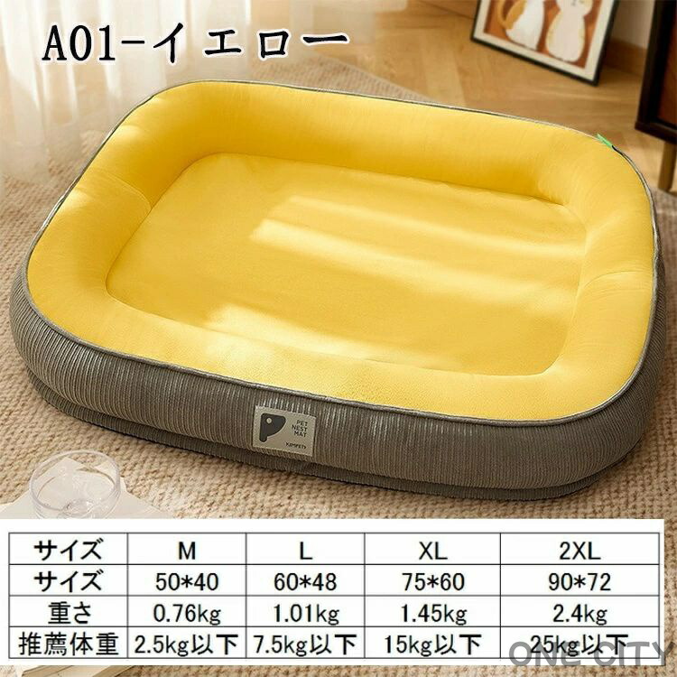 犬ベット ペットベッド 噛んでも破れな 犬用品 ベッド マット 寝具 クッション 続々登場 グレー グリーン カーキ A01-イエロー B01-グリーン B02-グレー B03-ダークグリーン M 50*40cm L 60*48cm XL 75*60cm 2XL 90*72cm