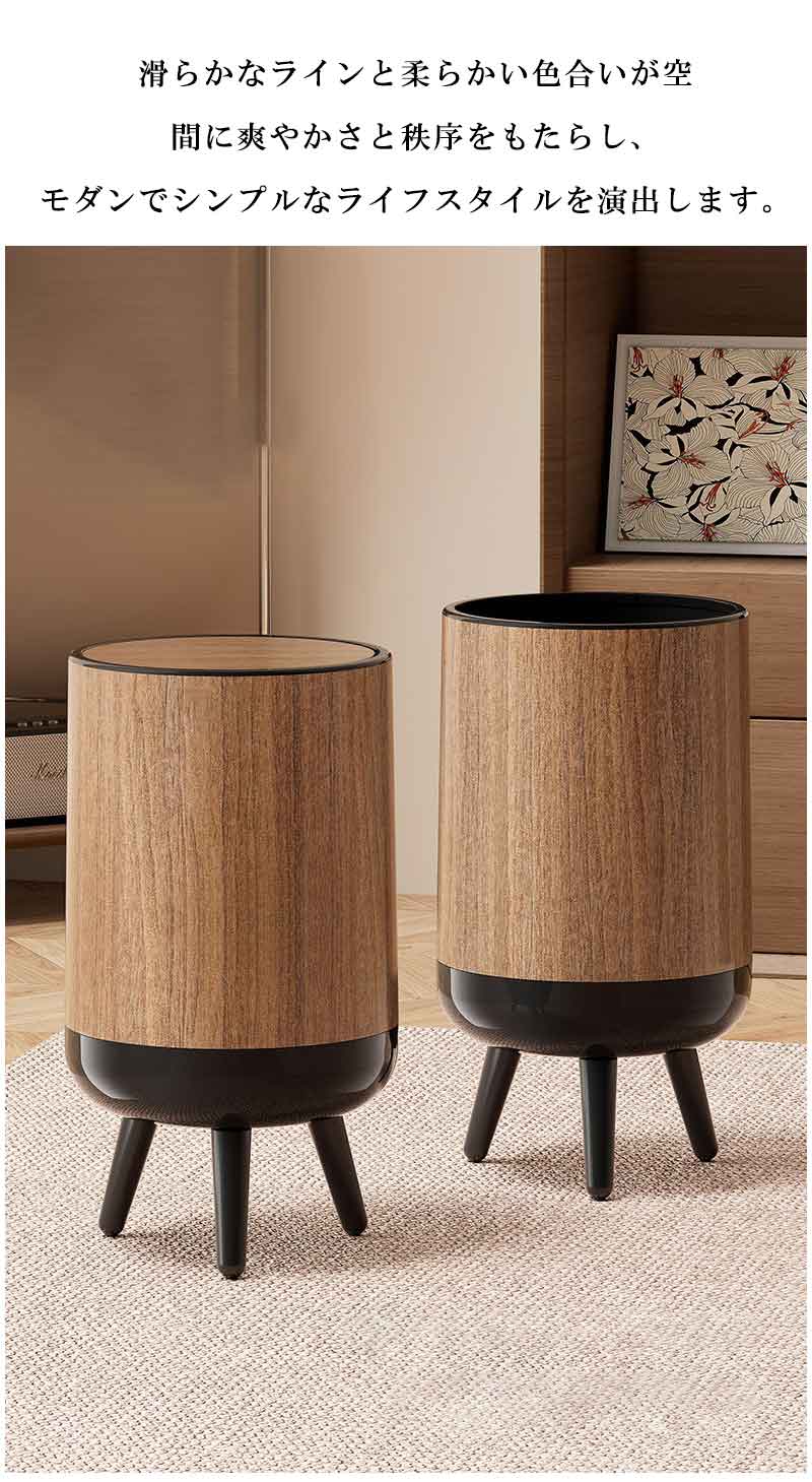 ゴミ箱 蓋付き リビング キッチン 洗面所 ゴミ箱上ラック ゴミ容器 大容量 ゴミ袋が見えない 丸型 ビニール袋隠す 15L 木目調 寝室 リビングルーム おしゃれ シンプル 事務所