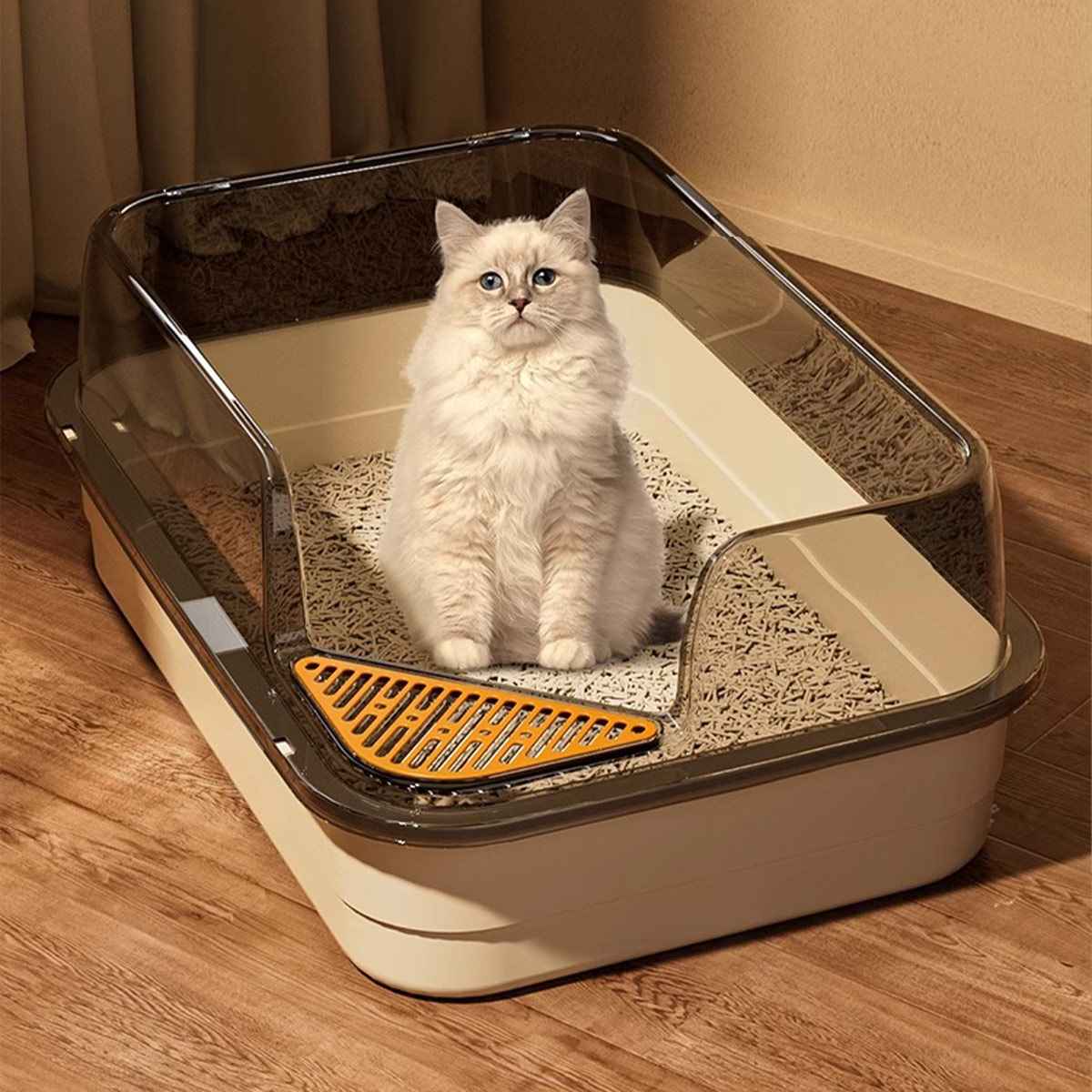 猫トイレ 飛び散らない 大きめ 深め 猫用品 トイレ用品 トレーナー トイレ容器 新作 ピンク グレー アイボリー イエロー グリーン ブラック