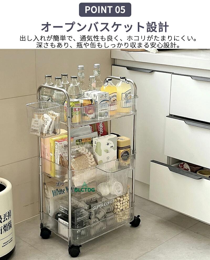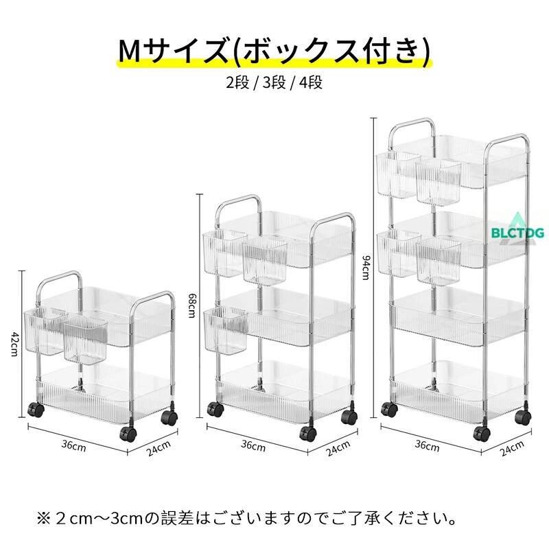 ワゴン キャスター付き ラック 低い 2段(ボックス付く) 3段(ボックス付く) 4段(ボックス付く) S M L