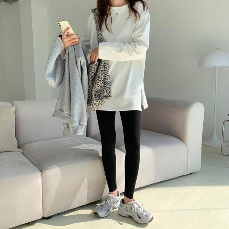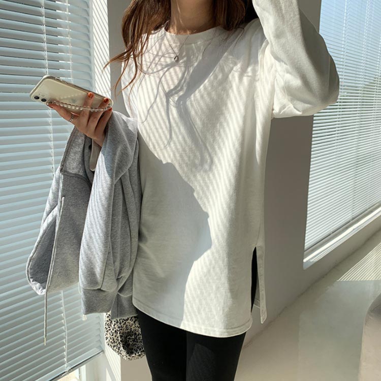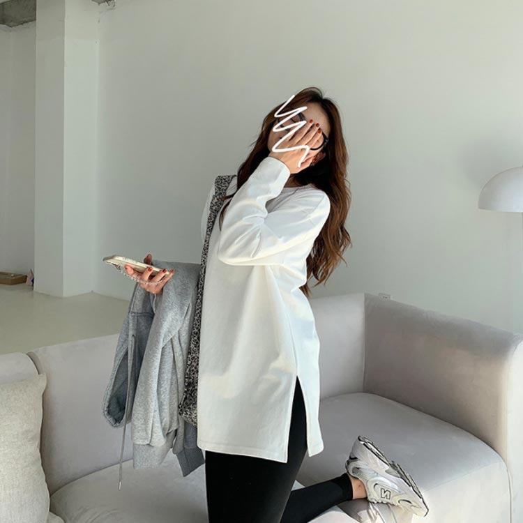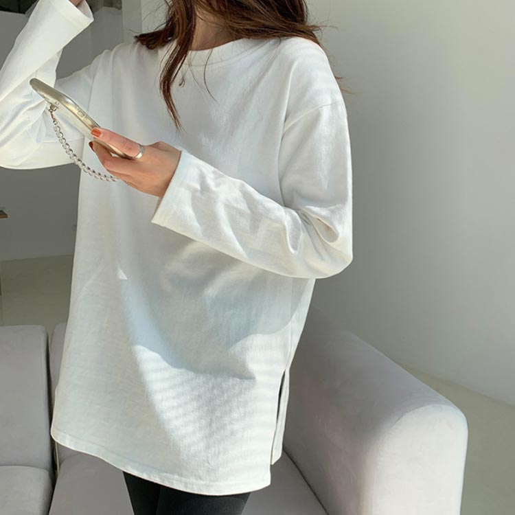 レイヤード シンプル 韓国 クルーネッ トップス Tシャツ カットソー 人気 ホワイト ブラック M L XL 2XL