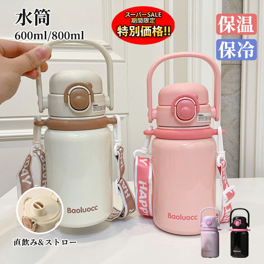 水筒 蓋付き 保冷 スポーツ ストロー キッチン用品 食器 調理器具 早い者勝ち 600ml 800ml ベージュ ピンク ブラック パープル